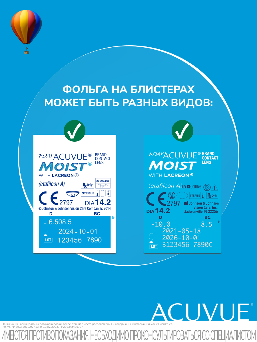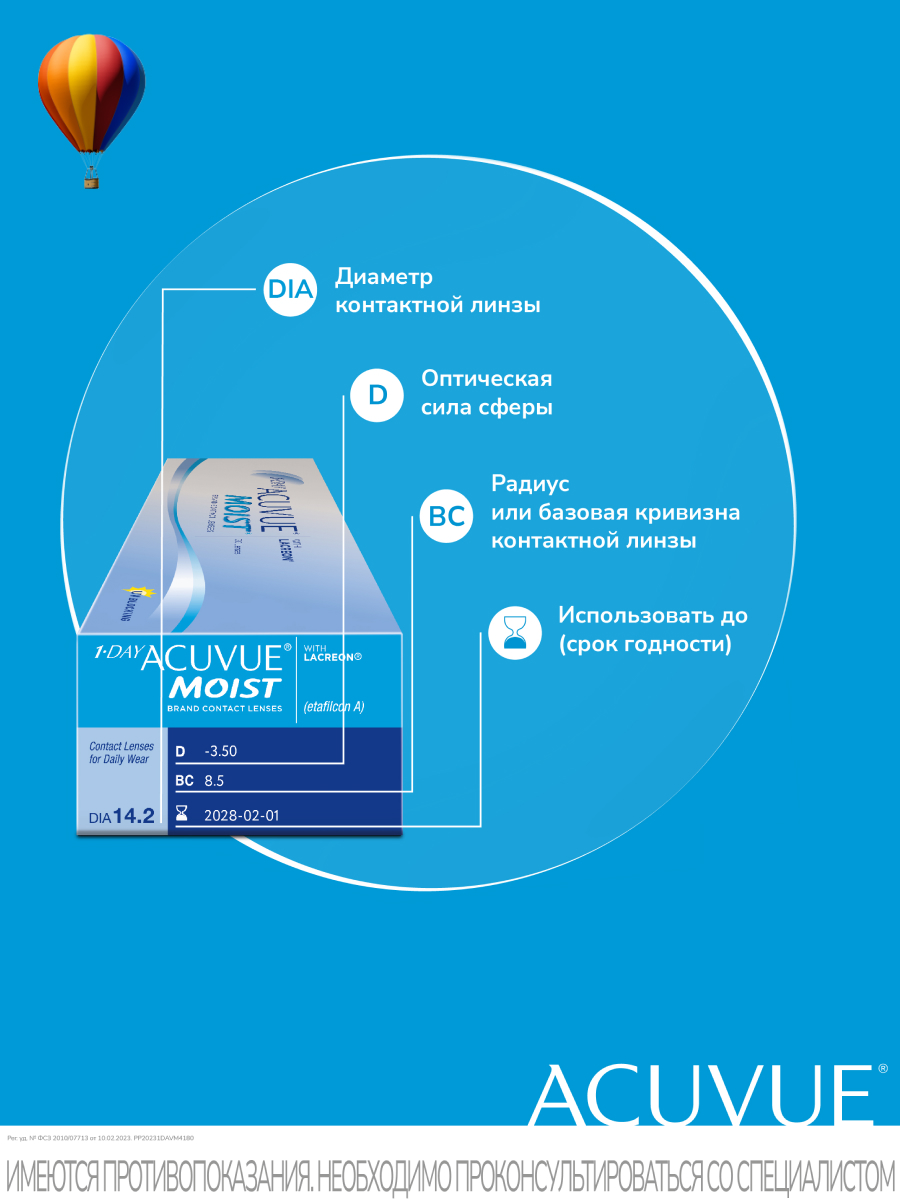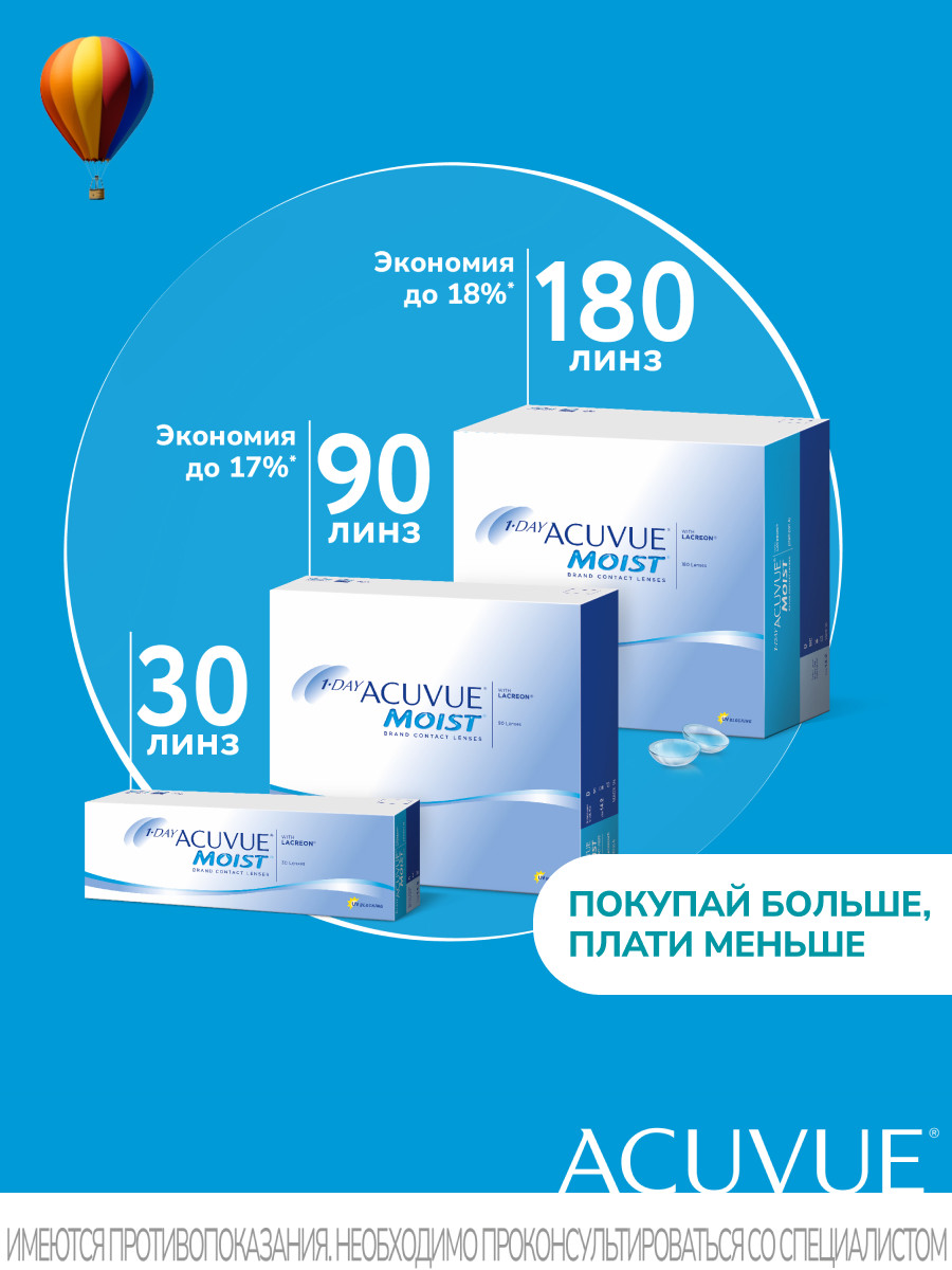 Линзы 1-DAY ACUVUE MOIST созданы из гидрогелевого материала с применением уникальной технологии LACREON®.